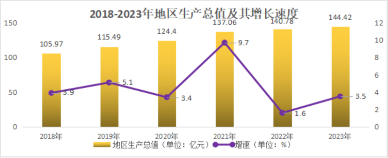根據清遠市地區生產總值統一核算結果,2023年我縣實現生產總值144.42億元,同比增長3.5%,其中:第一產業增加值51.38億元,增長4.2%;第二產業增加值26.38億元,增長1.3%;第三產業增加值66.66億元,增長3.7%,三大產業結構比例為35.6︰18.3︰46.1,人均地區生產總值39245元,增長3.4%。