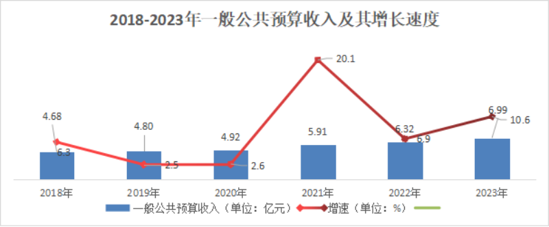 全年地方一般公共預算收入6.99億元,增長10.6%。其中稅收收入1.99億元,增長14.6%。地方一般公共預算支出38.83億元,與上年基本持平,其中一般公共服務支出3.3億元,下降13.9%;教育支出7.99億元,增長6.4%;社會保障和就業支出8.48億元,增長0.2%;衛生健康支出4.62億元,增長4.9%;農林水支出8.72億元,增長3%。