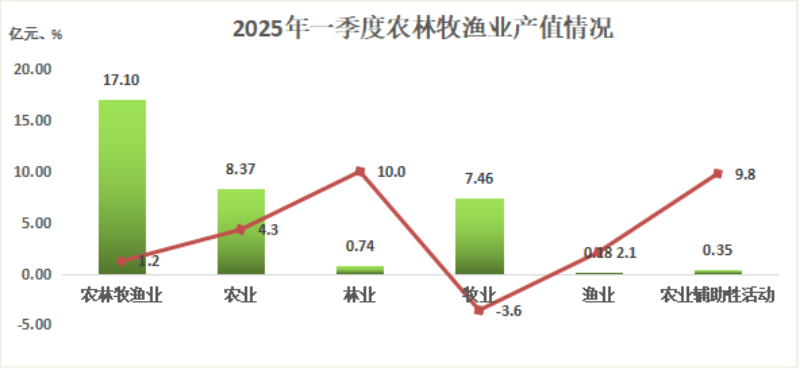 根據(jù)清遠(yuǎn)市地區(qū)生產(chǎn)總值統(tǒng)一核算結(jié)果,2025年一季度,陽山地區(qū)生產(chǎn)總值34.33億元,按不變價格計算,同比增長3.6%。其中,第一產(chǎn)業(yè)增加值10.41億元,增長0.8%;第二產(chǎn)業(yè)增加值5.83億元,增長10%;第三產(chǎn)業(yè)增加值18.09億元,增長3.6%。