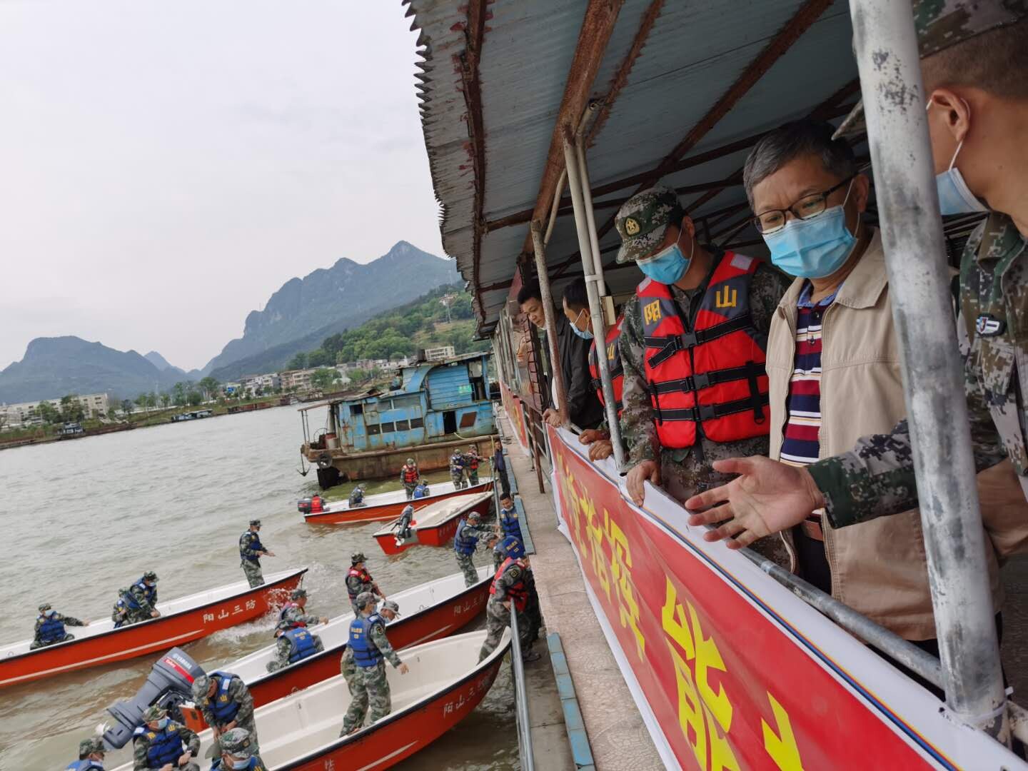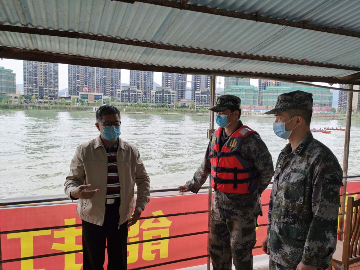 2020年4月13日下午,縣應急管理局黨組書記、局長李文雄在縣人武部副部長王浩陪同下,到縣城連江河察看指導縣民兵輕舟分隊集訓演練。并就深化部門協調、加強應急救援隊伍建設等進行了深入交流。