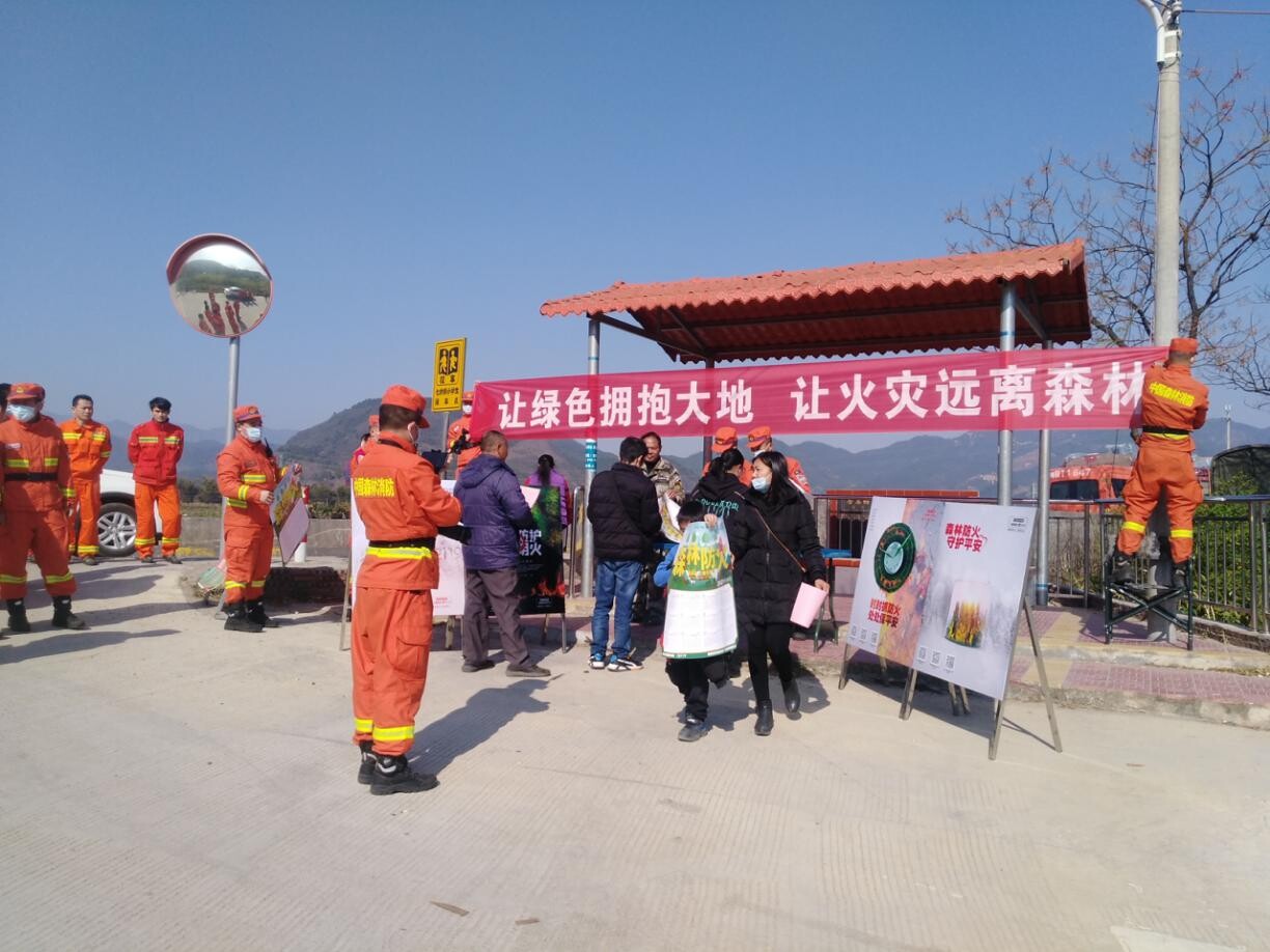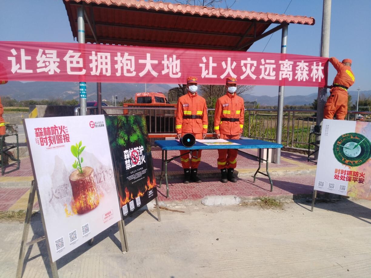 福建省森林消防總隊駐防粵隊員在七拱鎮西連村布點設防,多種形式開展森林防滅火宣傳、護林巡查等工作,通過在站點內懸掛森林防火宣傳橫幅、擺放廣告宣傳牌匾、播放森林防火宣傳音頻和派發宣傳單張等方式向群眾普及森林防滅火知識,期間,10名隊員攜帶全副裝備進入林區巡查巡護。