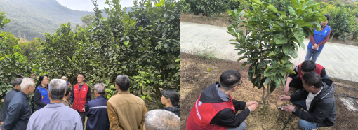 實(shí)地觀摩環(huán)節(jié),兩位專家前往蒲蘆洲村及嶺背鎮(zhèn)眾聯(lián)種養(yǎng)合作社調(diào)研種植新品種沙田柚的可行性,專家們還以現(xiàn)場(chǎng)沙田柚果樹作為實(shí)例,進(jìn)行了詳細(xì)的知識(shí)講解與經(jīng)驗(yàn)分享。