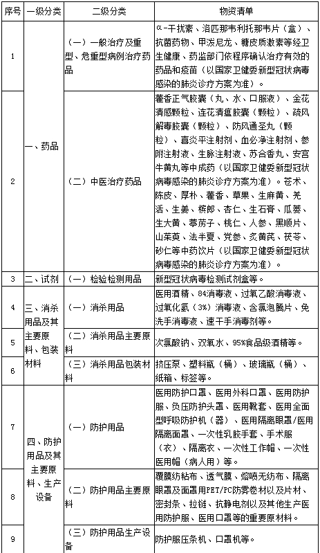 國家發(fā)展改革委疫情防控重點(diǎn)保障物資清單