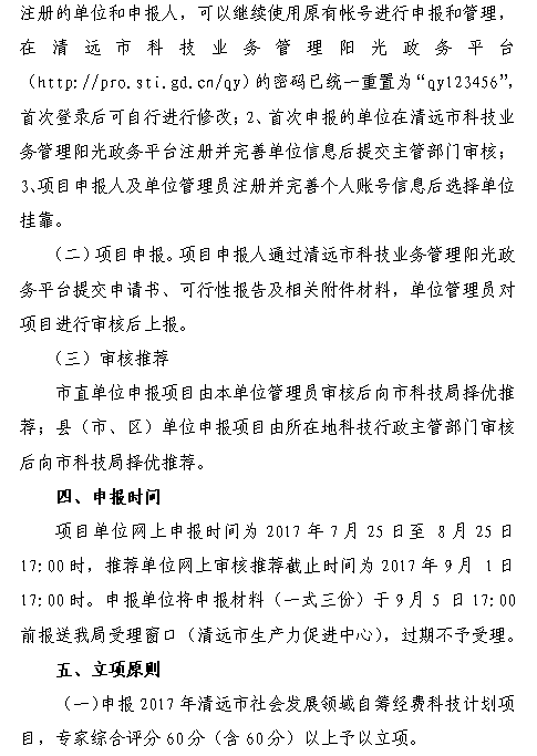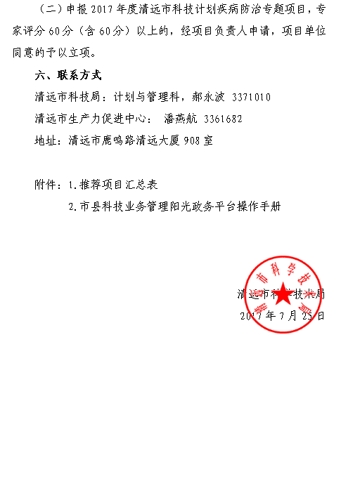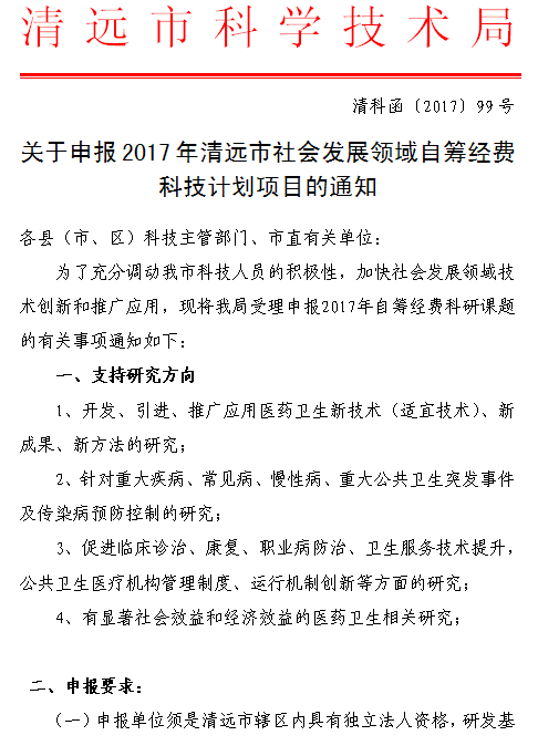關于申報2017年清遠市社會發展領域自籌經費科技計劃項目的通知