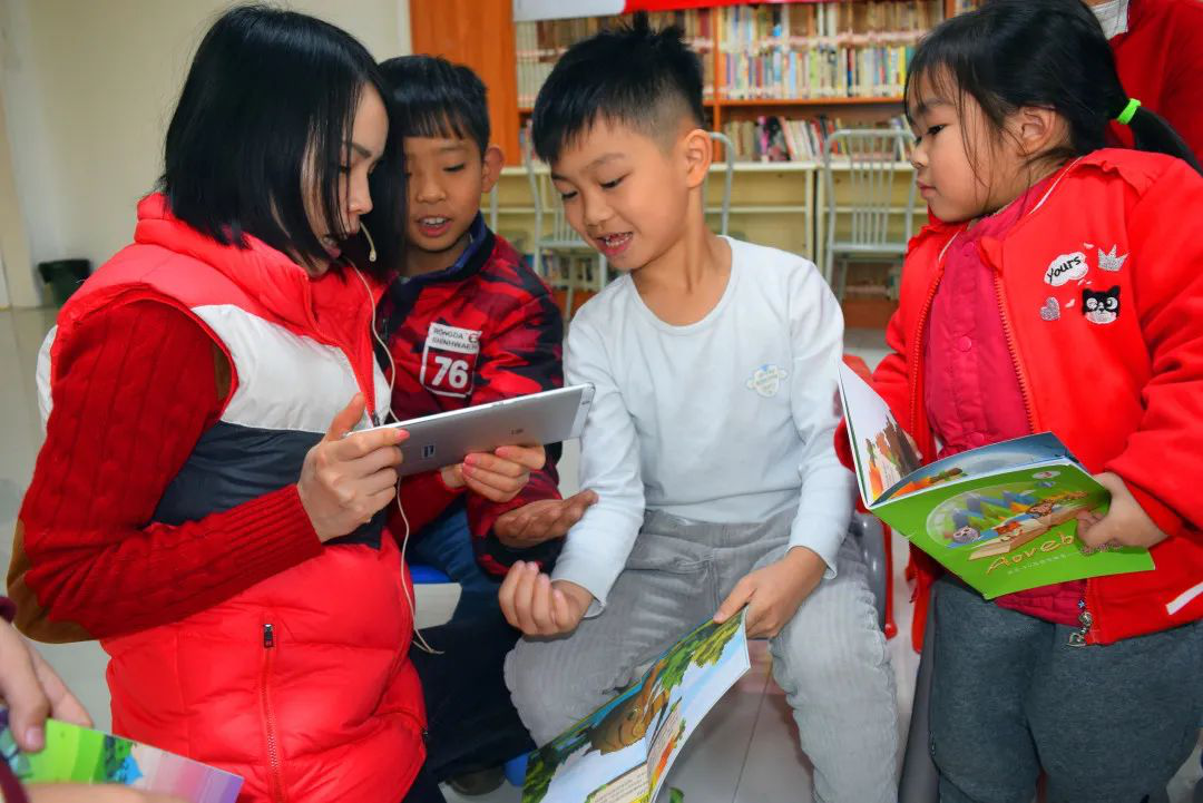 故事會的最后一個環節就是最受小朋友們喜愛的3d圖畫書體驗。他們紛紛從書架上挑選好自己喜歡的動物圖畫書,等待著陽圖文化志愿者為他們揭開3d圖畫書的奧秘。文化志愿者們利用平板電腦,讓小讀者們看到了更真實立體的動物形象,使小讀者們能與書本積極互動,讓閱讀變得更有趣。書本不再只是文字和圖畫,它們變得立體、形象,還會說話喲。