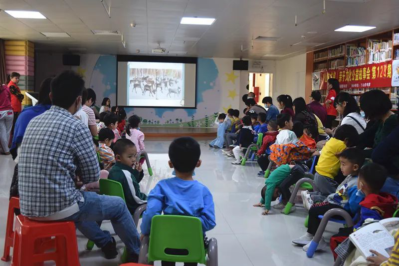 2020年11月8日上午10:00,【韓愈書房】親子文化公益故事會第129期,在青少年活動室如期舉行,本期分享的繪本故事是《鄂溫克的駝鹿》,主講人是陽圖文化志愿者道敏老師(廣東省少兒閱讀推廣人,陽圖親子故事會特約主講老師)。