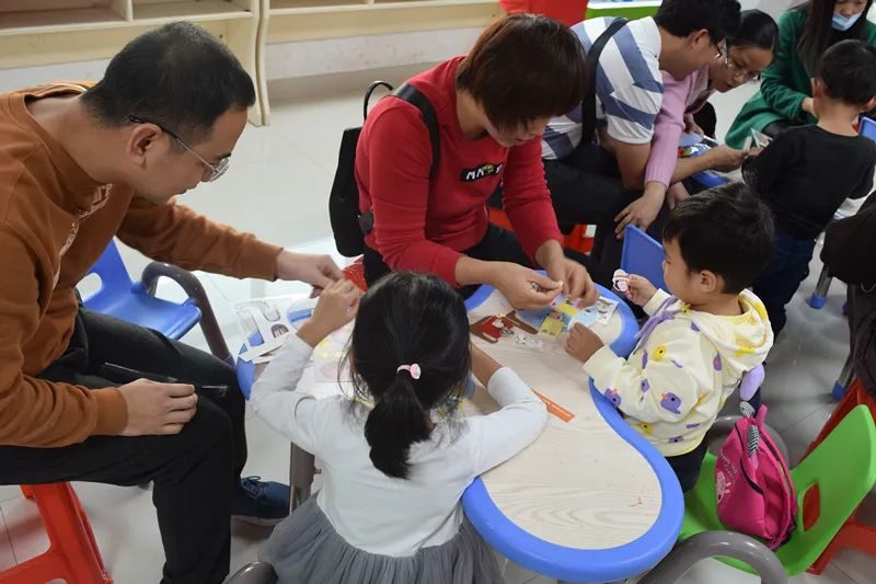 接下來,就是孩子們期待的手工活動了,梁老師先講解了手工的主題及貼畫的制作步驟,孩子們就迫不及待的動手了。在制作過程中,親子們一邊聽著梁老師講述一些關于重陽的傳統文化,一邊按著步驟動手制作,親子間相互溝通、相互合作。當一個個漂亮的紙盤貼畫完成時,家長們都忍不住拿起手機拍照,臉上洋溢出燦爛的笑容。