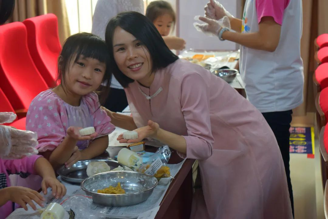 學做手工月餅,感受傳統文化。孩子們一邊動手制作,大人們一邊回味小時候月餅的味道,活動室里充滿了歡聲笑語,現場月餅飄香,其樂融融。