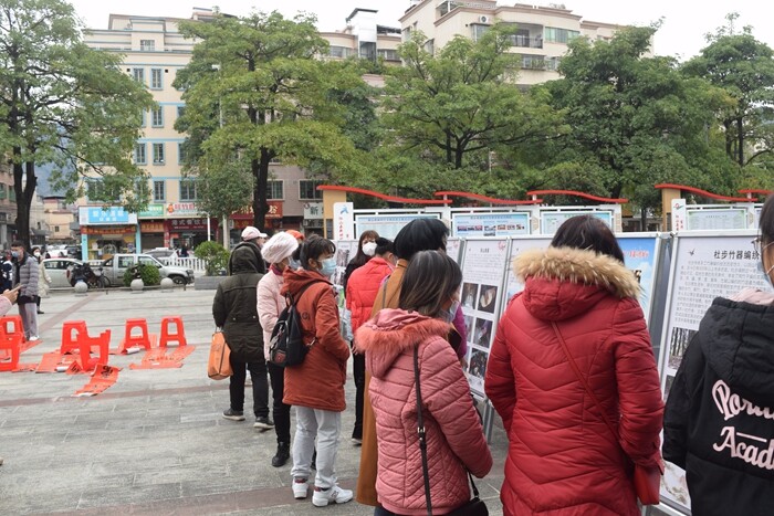 2023年1月15日上午,在陽山縣圖書館門前廣場里文化服務志愿者有序地將圖文并茂的非遺展板整齊鋪開。隨著附近同時開展的“墨香揮春·春到福來”——書法名家送福送春聯活動的涌涌人流,非遺展板前的觀眾也絡繹不絕。現場群眾一邊討論一邊用手指點比劃著,對我縣非遺項目產生了濃厚的興趣和熱情。展覽讓大家感受非遺文化魅力,開闊視野與增長知識的同時,進一步體現了我縣非物質文化遺產保護成果,增強了民眾對傳統文化的認同感和自豪感,提升了人民對文化遺產的保護意識。