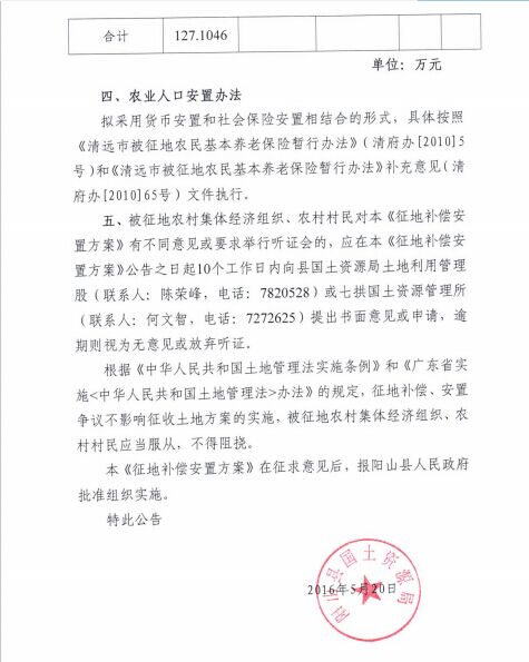 關(guān)于陽山縣七拱鎮(zhèn)2015年度第二批次城鎮(zhèn)建設(shè)用地《征地補(bǔ)償安置方案》公告