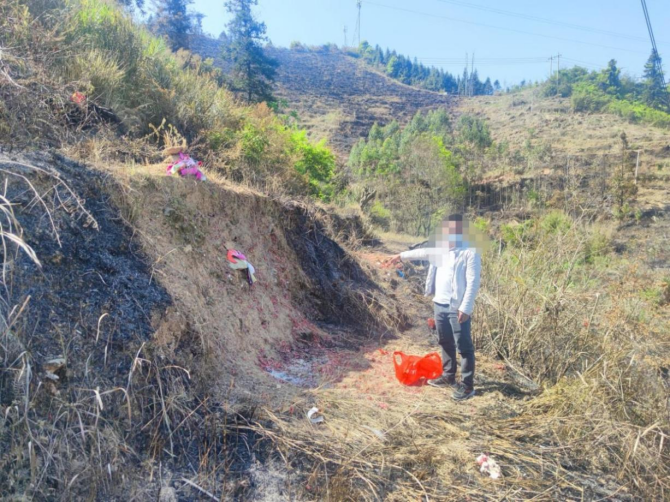 案例三:2022年4月4日中午12時許,大城村委會雷家村秧地坪發生山火。經查,是錢某等人去拜祭祖先時燃燒爆竹不慎引發山火。過火面積約5畝。目前,案件正在進一步處理中。