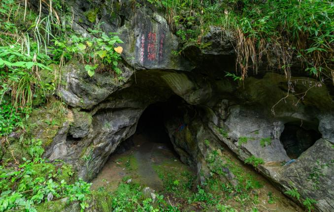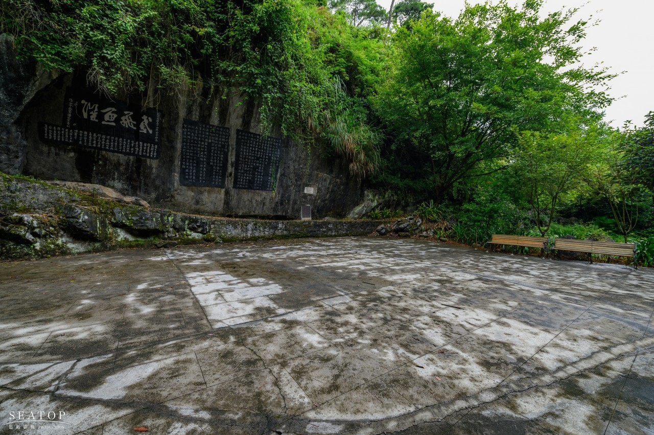 不想上磨刀坑的可以在分岔口往左走,抵達賢令山景點之一——水簾洞,水簾洞洞高數丈,每逢春夏時節,水從上面流下,形成一幅珠簾將洞口遮蔽,故而得名水簾洞,洞東西貫通,鐘乳石高懸掛,滴泉叮咚,洞口清潭淺綠,洞外藤蘿紫秀。