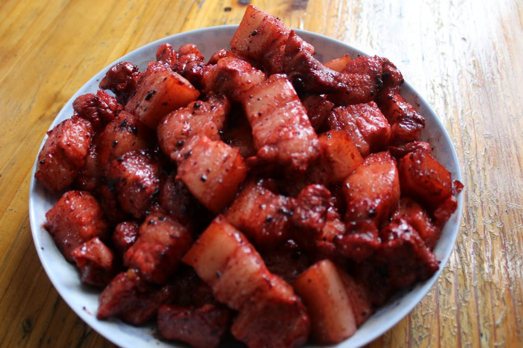 黎埠鎮位于廣東清遠市陽山縣西北部地區,境內居民以漢族客家人為主。遷徙定居粵北山區的客家人流傳著許多傳統菜譜,客家美食也順其自然被傳入了當地,像“紅曲肉”這樣的傳統美食也一代一代的流傳下來。