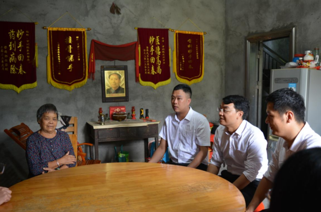 隨后,一行人來到烈士子女家中走訪慰問,市退役軍人服務中心領導與烈士子女親切交談并送上慰問品,詳細詢問其生活、身體狀況,了解其是否享受到相關政策優惠,叮囑鎮、村級服務站的工作人員要經常來探望,及時解決烈士子女提出的訴求。