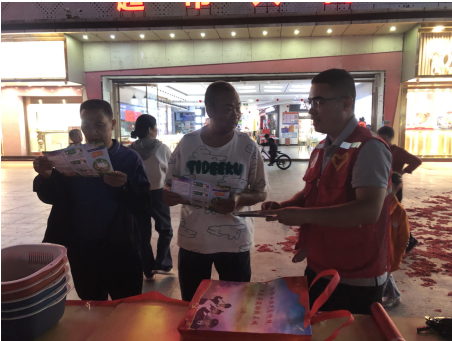 宣傳志愿者小組在繁華的城北城市廣場商圈設置宣傳攤位