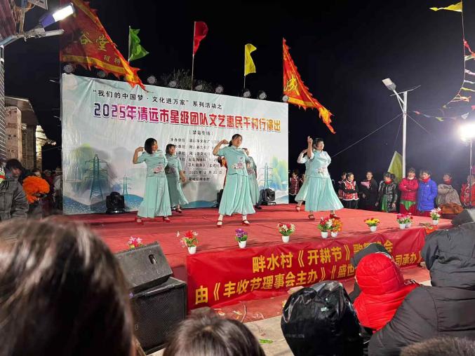 2025年2月23日,“我們的中國夢·文化進萬家”系列活動之2025年清遠市星級團隊文藝惠民千村行演出暨畔水村開耕節文藝晚會,在畔水村“豐收節理事會”門坪精彩上演。將豐富的文化大餐送到基層群眾身邊,極大地豐富了群眾的精神文化生活。
