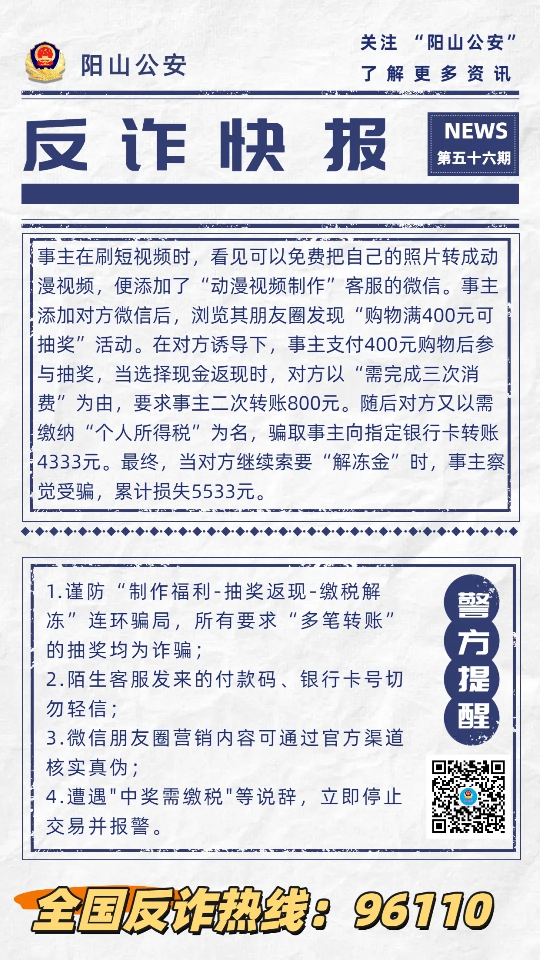 【反詐快報56期】“免費動漫制作”變連環套!市民輕信抽獎活動被騙