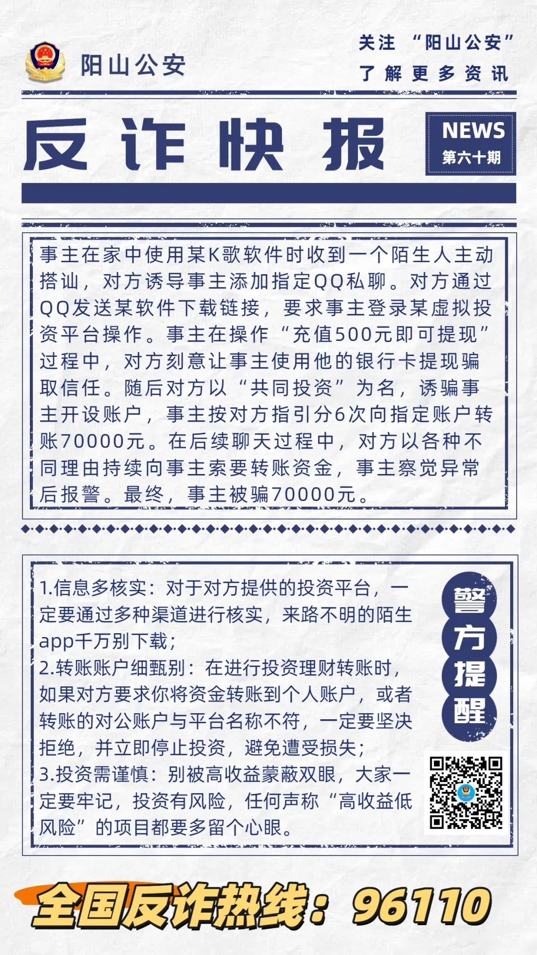 【反詐快報60期】詐騙分子設局誘騙市民投資,警惕虛假理財騙局