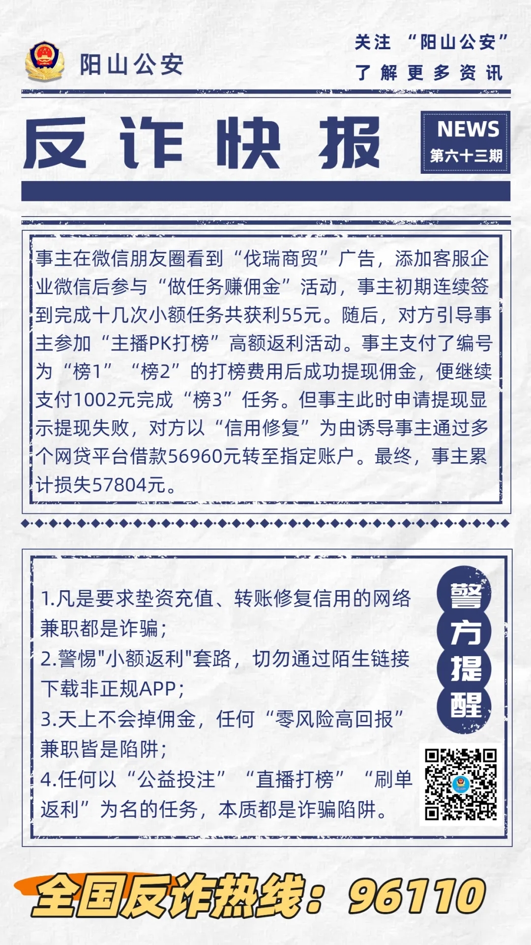 【反詐快報(bào)63期】假返利真詐騙!市民輕信朋友圈廣告被騙