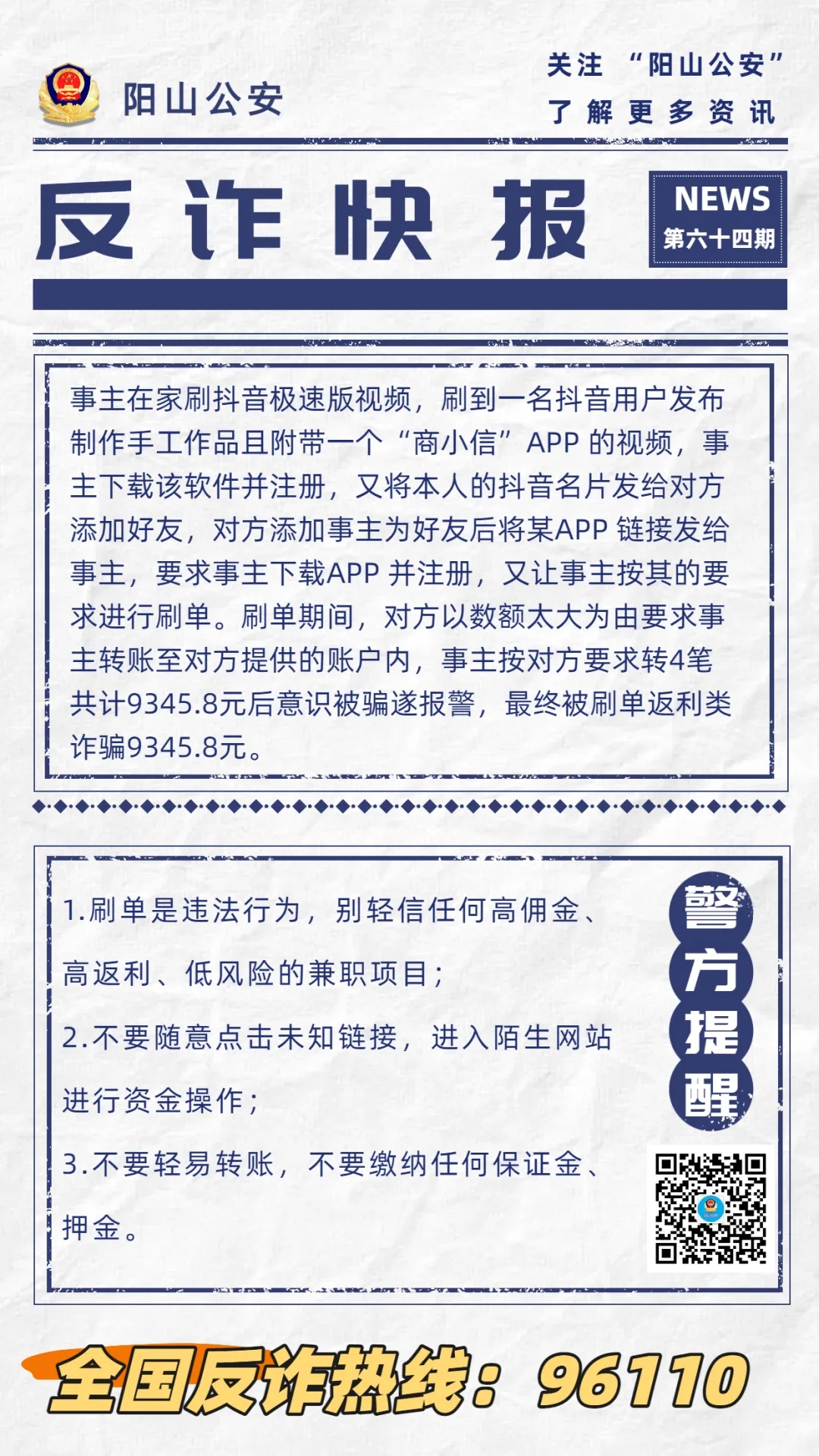 【反詐快報(bào)64期】網(wǎng)上兼職刷單 詐騙陷阱防防防!