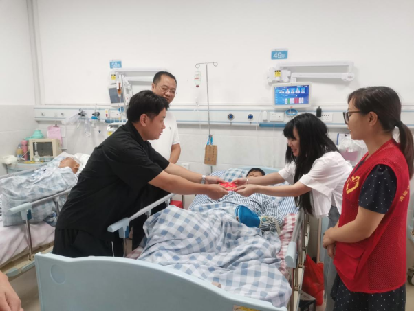 2025年8月20日上午陽山縣退役軍人事務局聯合擁軍門店雅音藝術一起組成慰問組,到陽山縣人民醫院慰問現役軍人龔某的父親,為現役軍人家屬送上慰問和祝福。