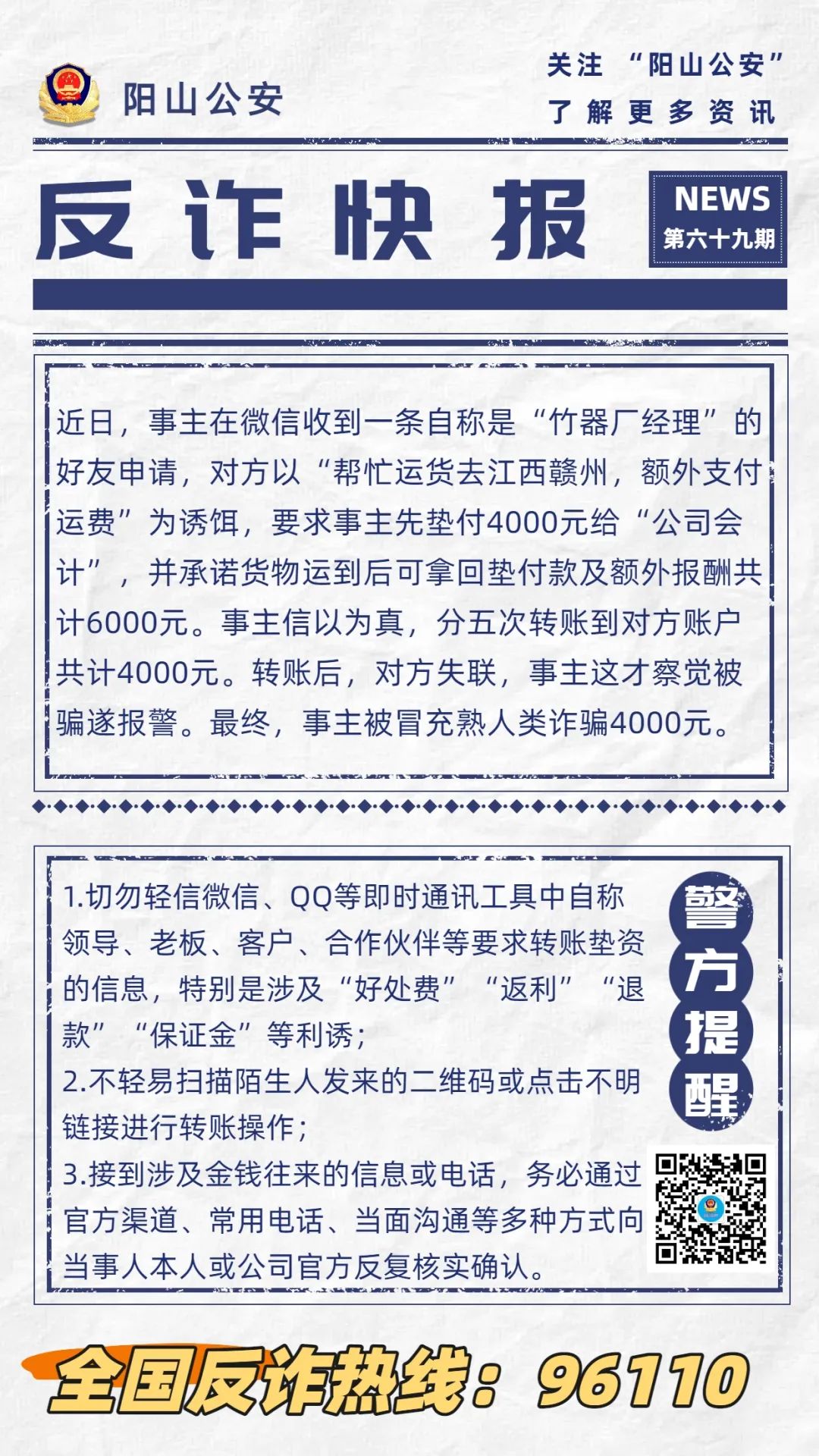 【反詐快報69期】工作中接“經理”微信幫運貨,司機掃碼墊資反被騙
