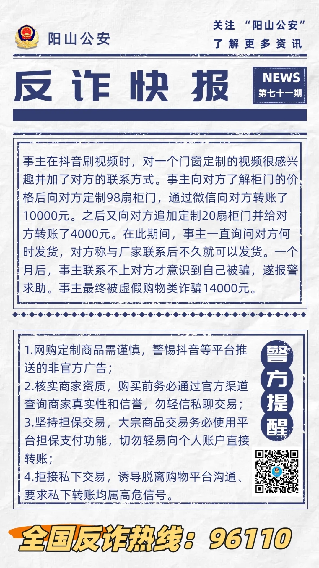 【反詐快報71期】萬元定制柜門打水漂,男子遭遇購物詐騙!