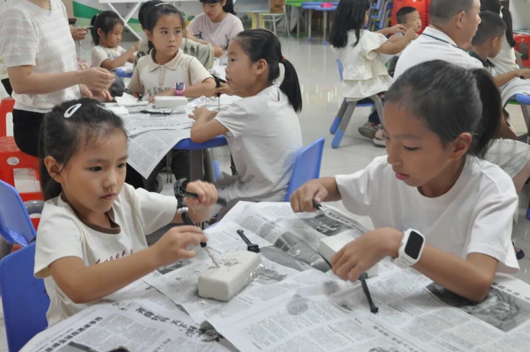 活動(dòng)現(xiàn)場(chǎng)為每個(gè)家庭準(zhǔn)備了兵馬俑的手工材料。孩子們化身 “小小考古學(xué)家”,體驗(yàn)真實(shí)考古的嚴(yán)謹(jǐn)與樂(lè)趣:先用竹簽輕輕鑿開(kāi)石膏表面的 “覆土”,遇到堅(jiān)硬處可適量加水降低難度,避免損壞內(nèi)部的 “陶俑”;再用刷子細(xì)細(xì)清掃掉落的土塊,看著 “陶俑” 的輪廓一點(diǎn)點(diǎn)顯露;最后徹底清理殘留粉塵,一件親手挖掘的 “兵馬俑” 就完整呈現(xiàn)。這份 “考古成果” 既能擺在家中當(dāng)裝飾,也能送給親友,讓千年秦韻成為身邊的紀(jì)念。