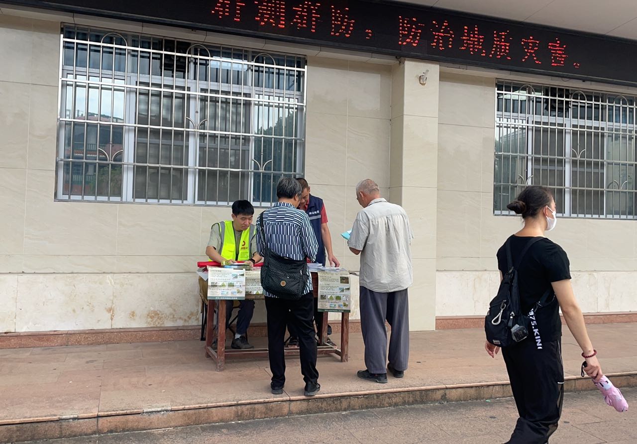 (工作人員向市民宣傳防災(zāi)減災(zāi)救災(zāi)相關(guān)科普知識)