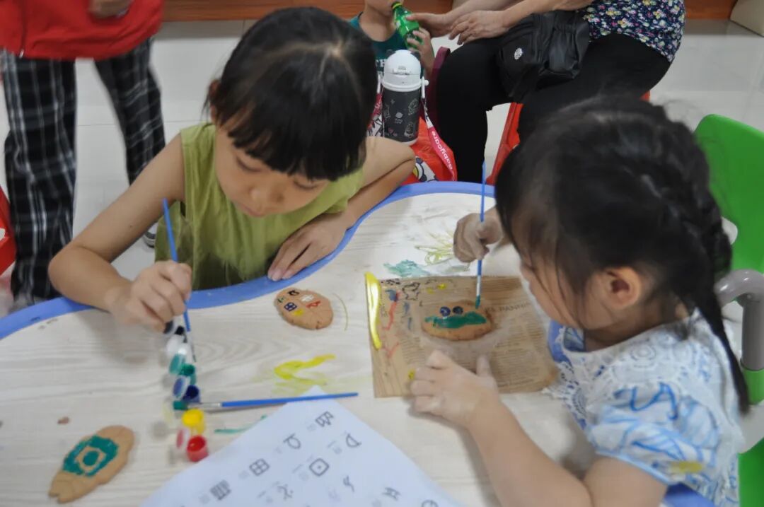 終于到了激動人心的手工實踐環節。志愿者們為每位小朋友們分發了陶泥、刻刀和顏料,大家迫不及待地開始發揮自己的創意。有的選擇將自己的名字用甲骨文刻在陶泥上,有的則選取了寓意吉祥的甲骨文圖案進行創作。大家全神貫注地雕刻著,仿佛自己就是千年前的古人,用手中的刻刀記錄著生活的點點滴滴。