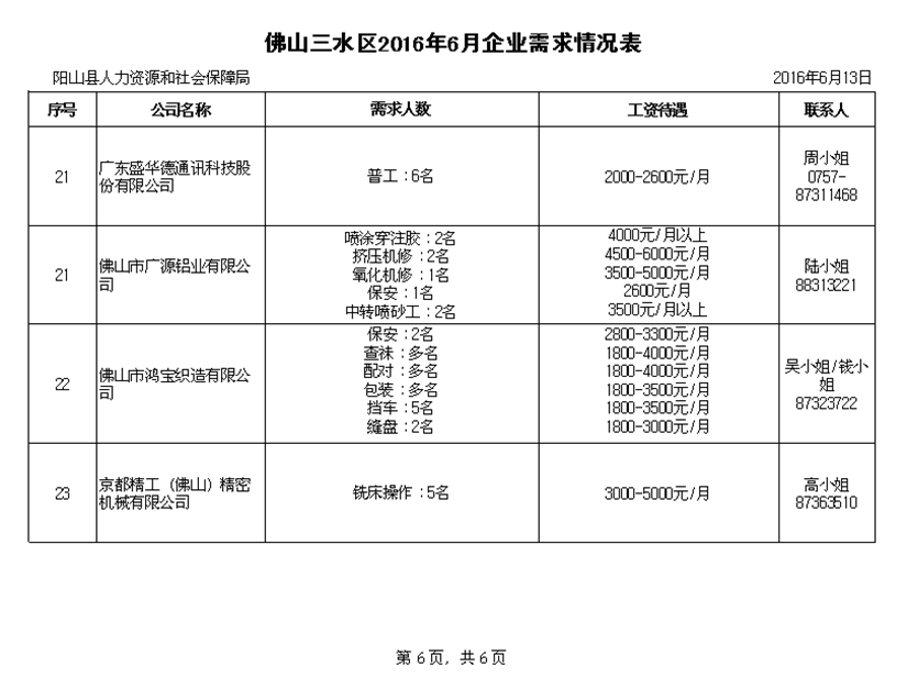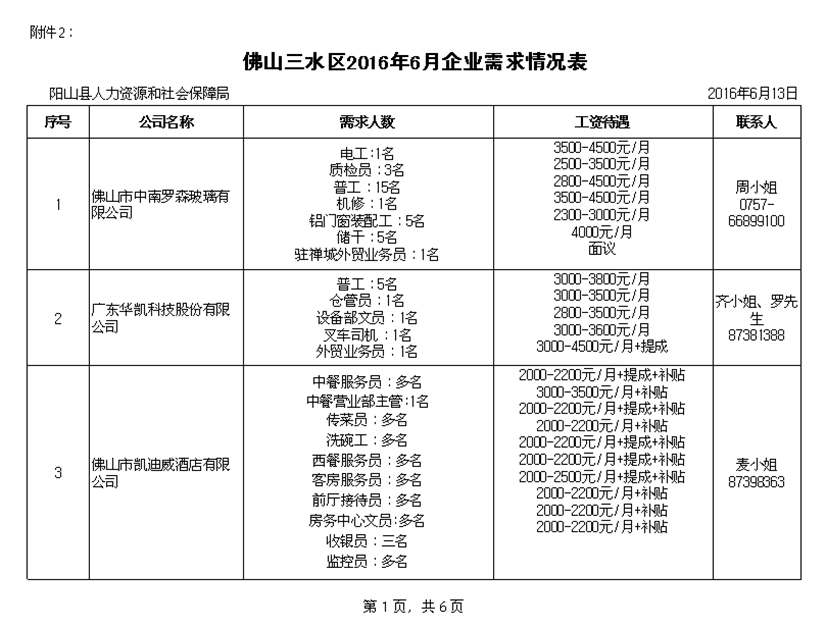 2.佛山三水區(qū)2016年6月企業(yè)需求情況表