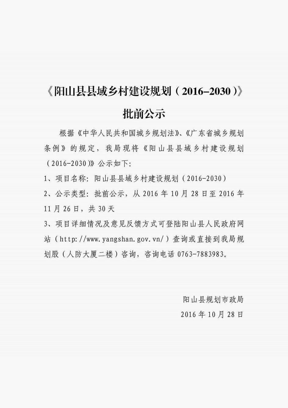 《陽山縣縣域鄉村建設規劃(2016-2030)》批前公示