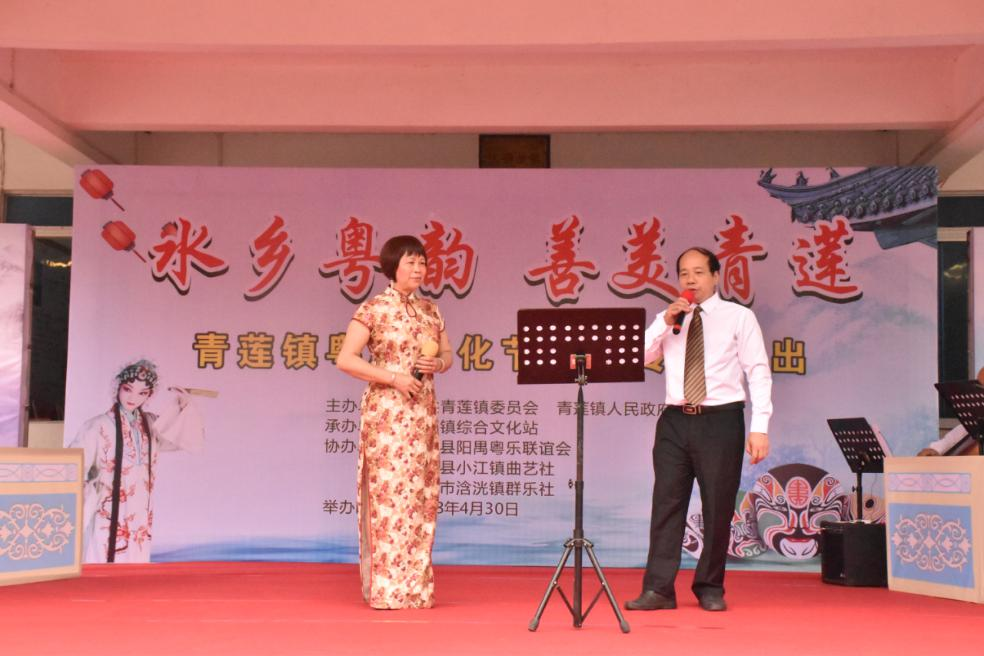 青蓮粵曲文化歷史流傳悠久,清末民初已有街巷流行唱曲,民國時期建有粵曲社,分別在沙市街(現前進路)與新街尾。社內戲劇服裝和二胡、層層洋琴、鑼鼓、銅鑼鈸、文鑼、碟子等唱戲樂器齊全,并定期在原電影院附近的戲棚進行表演。當時粵曲社一開場演出,八音樂器輪番演奏,歌聲跌宕起伏傳揚,吸引四面八方的人前來觀賞,演出場面盛大,清末民初,還有民眾從連江水道乘舟來青蓮觀看演出。