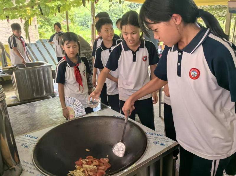 活動(dòng)從上午拉開(kāi)帷幕,來(lái)到研學(xué)基地的同學(xué)們經(jīng)過(guò)短暫地隊(duì)列整理后,分成三個(gè)隊(duì)列,在老師的帶領(lǐng)下沿著基地的三條研學(xué)線路,開(kāi)展徒步探索、烹飪比賽、摘果體驗(yàn)和各類團(tuán)建活動(dòng)。